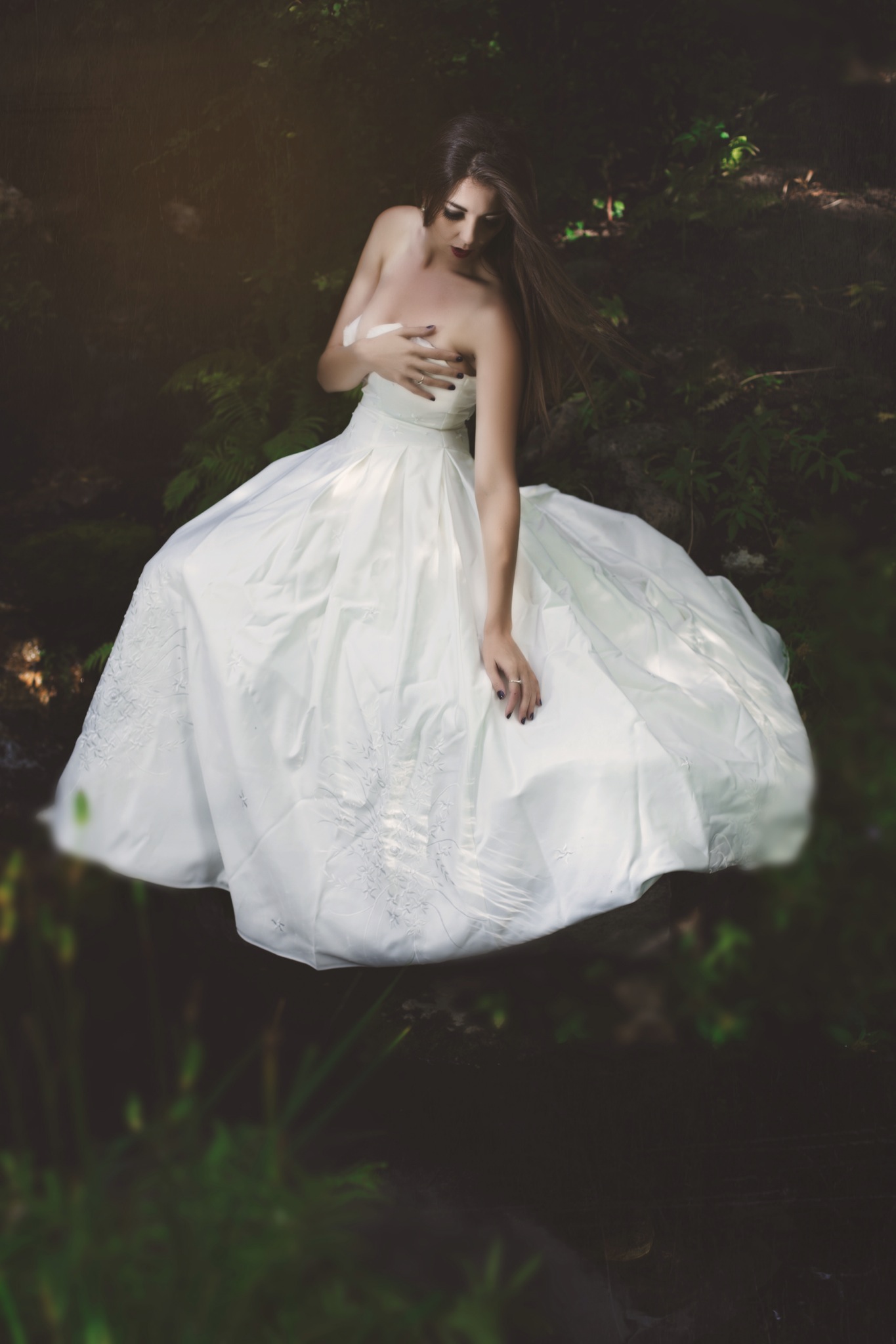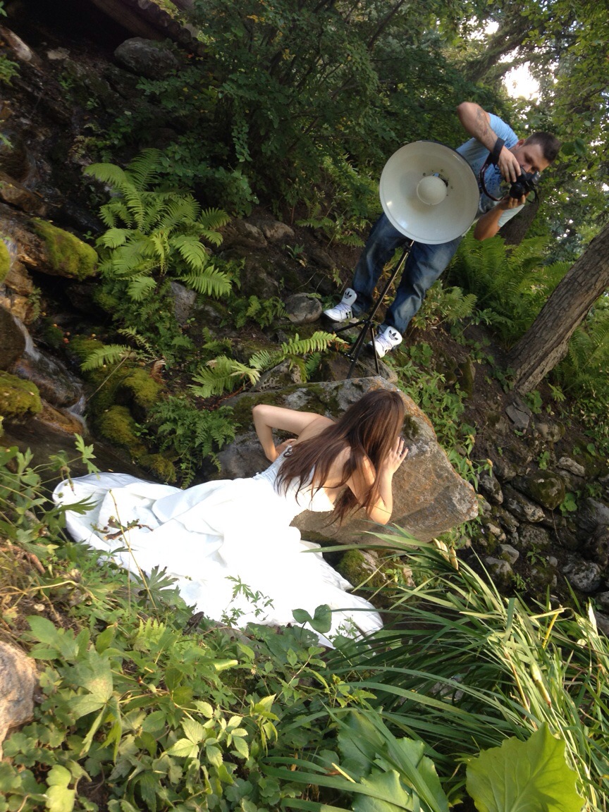 We went to our secret oasis where I stripped first to get ready. My girl Taralyn was in no hurry to be in the freezing cold, stream fed water. I squeezed my size 8 ass into the size 6 wedding dress and we decided almost immediately to chop the top straps off. Unfortunately that made it much harder to pose, but I figured it out. We didn’t feel too bad butchering the dress, I got it for $40 at a goodwill store.