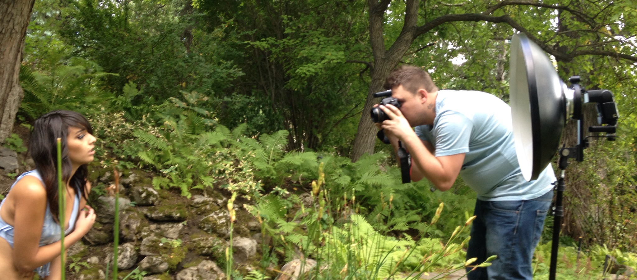 At first, I just walked into it. Then sat and leaned back against the small waterfall, then finally dumped my whole head and face into the water. Randy knows exactly how to work us, I got tough love in the cold water, but he helped me through it and we nailed the shots. I’m not going to lie. Once submersed each of the two times (half way and full way) I had to take 2-3mins to gather my nerves as my body was shaking severely. I had to pretend I was somewhere else. Thank god Taralyn said “just think of how warm your towel will be!” So I held that thought and pushed through. Near the end Randy was even nicer and said “we can get it in a couple shots if you need,” but I figured, fuck it, I’m already numb from the cold what’s another 5 minutes.