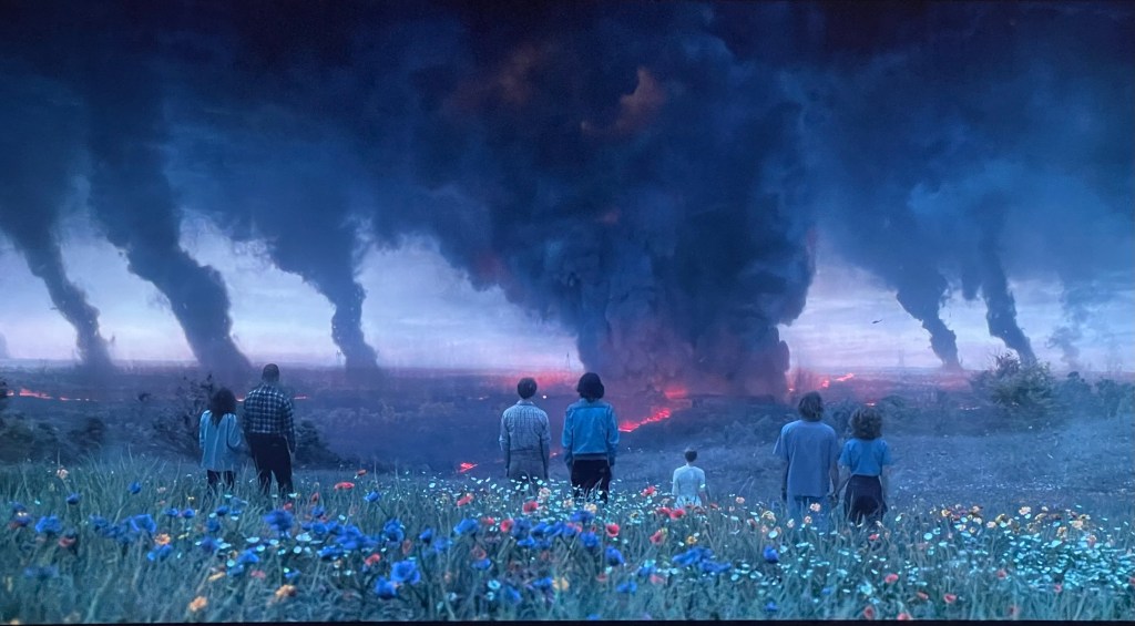 We see cars bailing from Hawkins as fast as they can, and how the remaining residents are going to recover from this tragedy. As little Holly celebrates the snow in spring, we all know the truth. The dust, the flayer has infiltrated the current time. The rip in the fabric is now allowing the upside down to leak through. Setting all Hell loose on Hawkins.